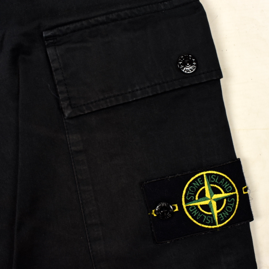 Stone Island black cotton re cargo trousers in 31