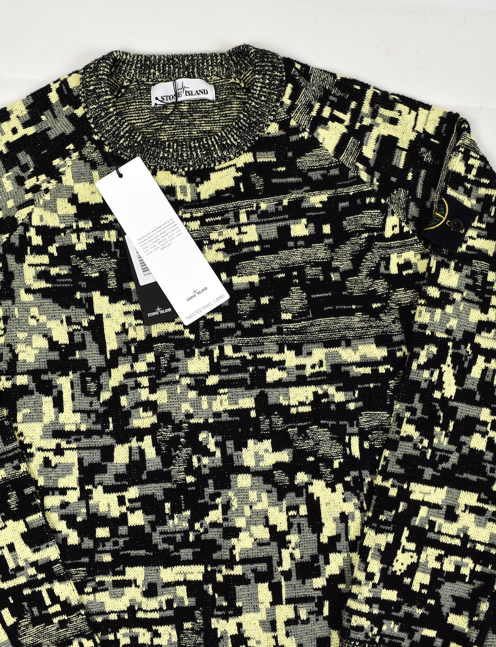 Stone Island twisted pixel camo crew neck knit in XL