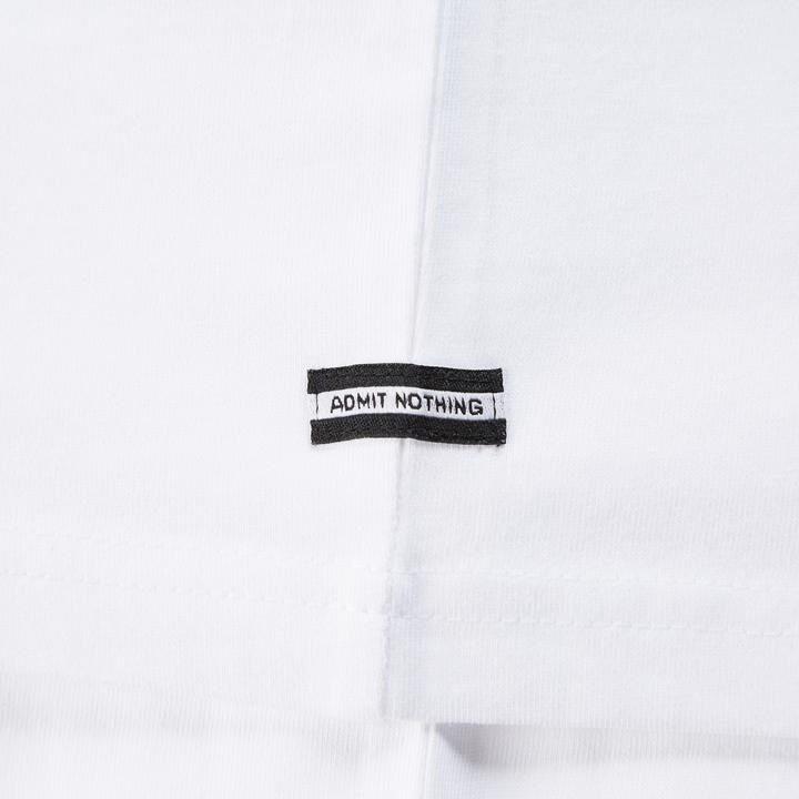- “Admit nothing” badge aan de zijkant